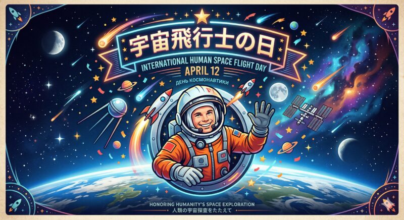 1961年4月12日、当時27歳のソビエト宇宙飛行士ユーリイ・ガガーリンがボストーク1号に搭乗し、1時間48分で地球を1周した史上初の有人宇宙飛行を成し遂げたことを記念しています。